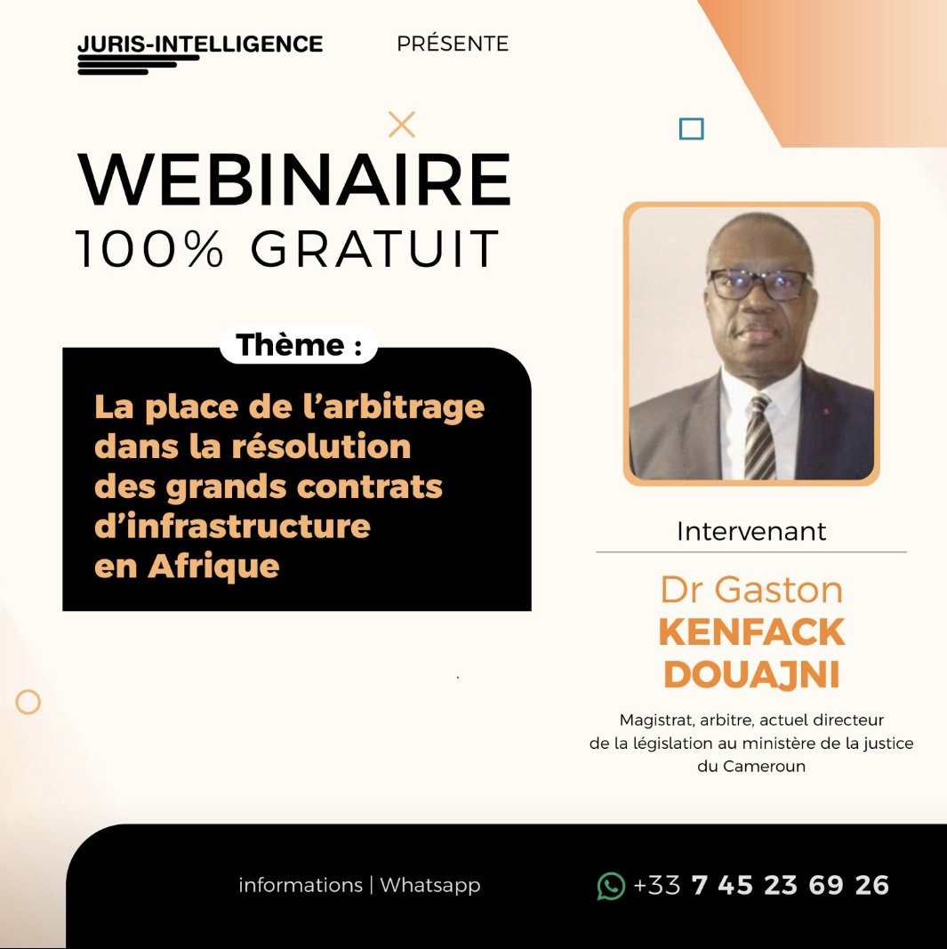 Ce webinaire s’adresse aux professionnels du droit, aux acteurs du secteur de l’infrastructure, aux investisseurs ainsi qu’à toute personne intéressée par les mécanismes de résolution des conflits en Afrique. C’est une occasion unique d’approfondir vos connaissances, d’échanger avec un expert reconnu et de mieux comprendre comment l’arbitrage peut sécuriser vos projets d’envergure.