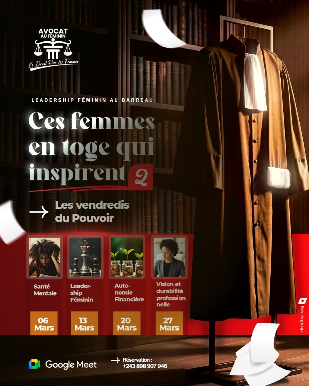 Cet événement est organisé par Belaris Group en collaboration avec Avocat au Féminin, une plateforme dédiée à la valorisation des femmes dans le droit, sous le thème : Le Droit par les Femmes.