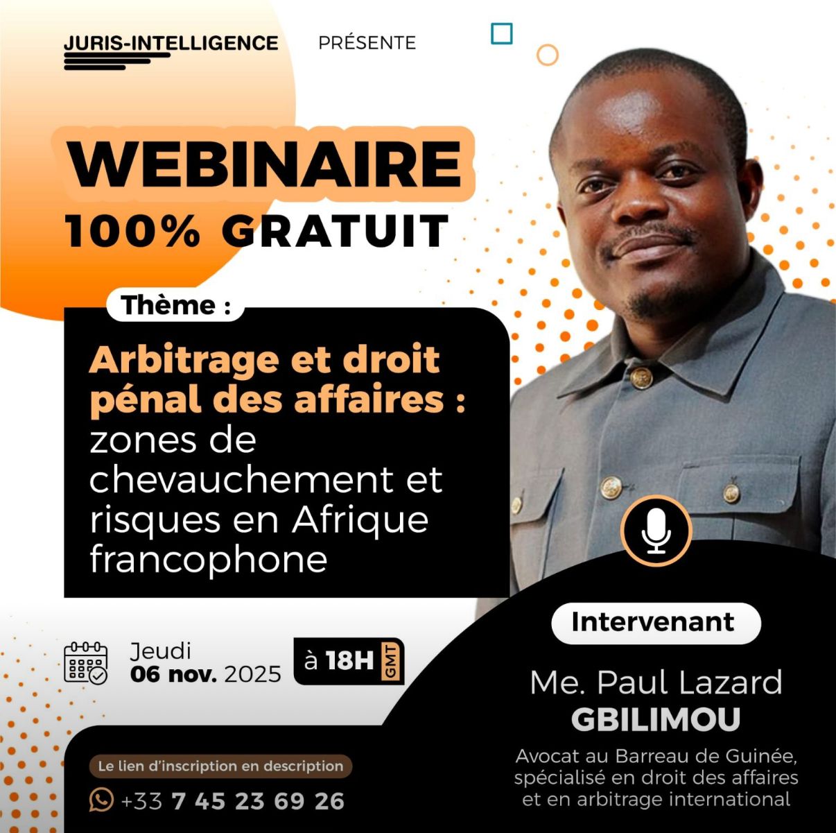 Pour mieux comprendre ces enjeux et anticiper les risques, JURIS-INTELLIGENCE organise un webinar gratuit exceptionnel animé par Me Paul Lazard GBILIMOU, avocat reconnu en droit des affaires et arbitrage international.